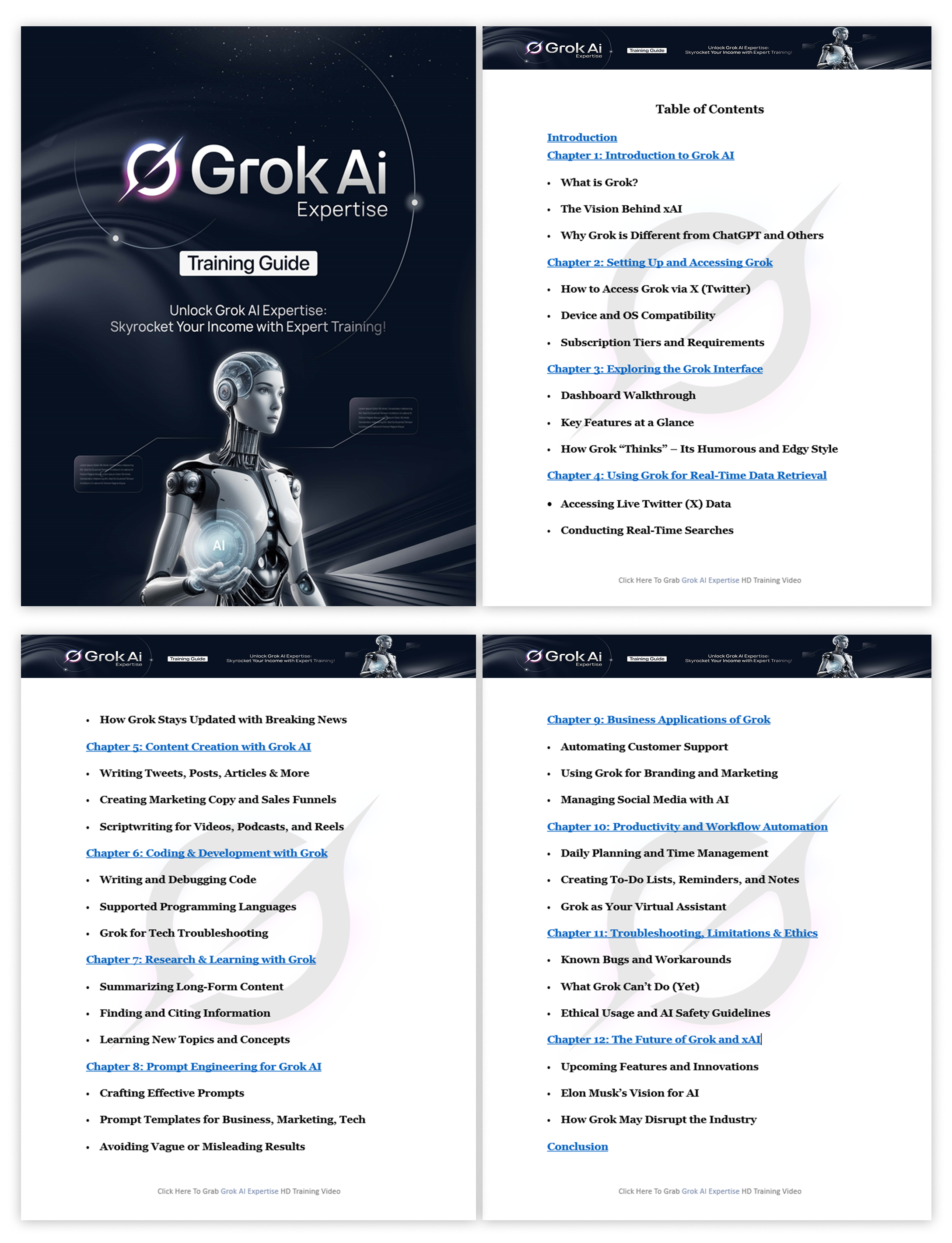 We've covered everything you need to know about mastering Grok AI, including how to harness its unique capabilities, craft powerful prompts, automate tasks, create innovative solutions, scale your business, and unlock new income opportunities — all while staying ahead in the fast-evolving world of artificial intelligence.